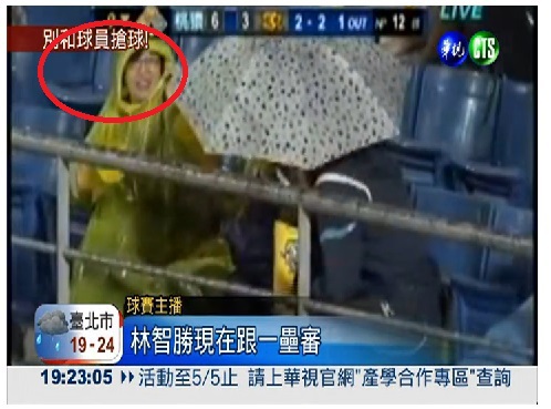 剛剛周思齊的界外飛球打到一個球迷,球迷看球要小心啊