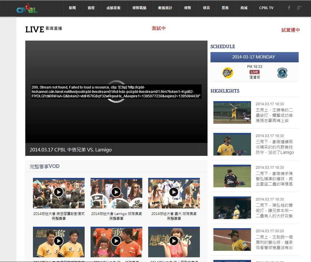 2014-03-23 17:19:00現在CPBLTV掛了嗎?? 200 ERROR