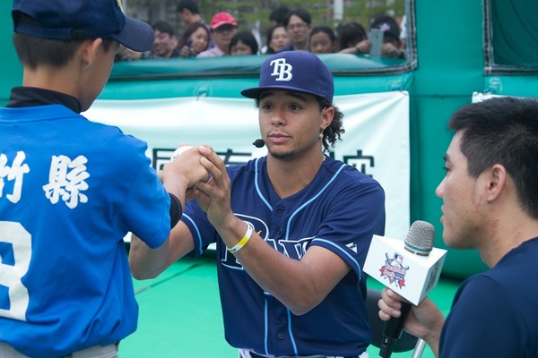 小少棒隊出席,光芒王牌投手亞契(Chris Archer)除了分享心路歷程,也指導小球員投球