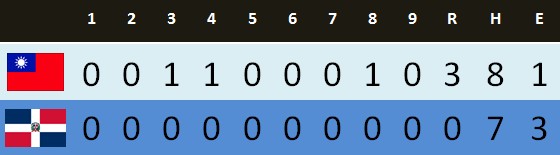 。打線方面,靠著郭嚴文、林益全和林智勝三支二壘安打,台灣隊攻下3分,三壘手陳鏞