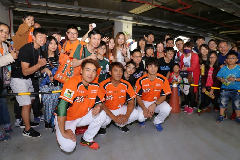統一球團為感謝冒雨依舊前來的球迷,特別舉行統一獅球星簽名會,請來唐肇廷、郭阜林