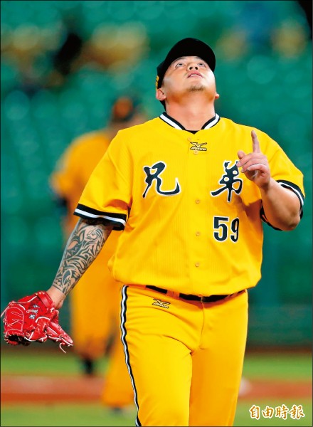 洪宸宇本季初登板,對獅隊投第9局無失分,演出3上3下,退場時望向天空,就像是把這