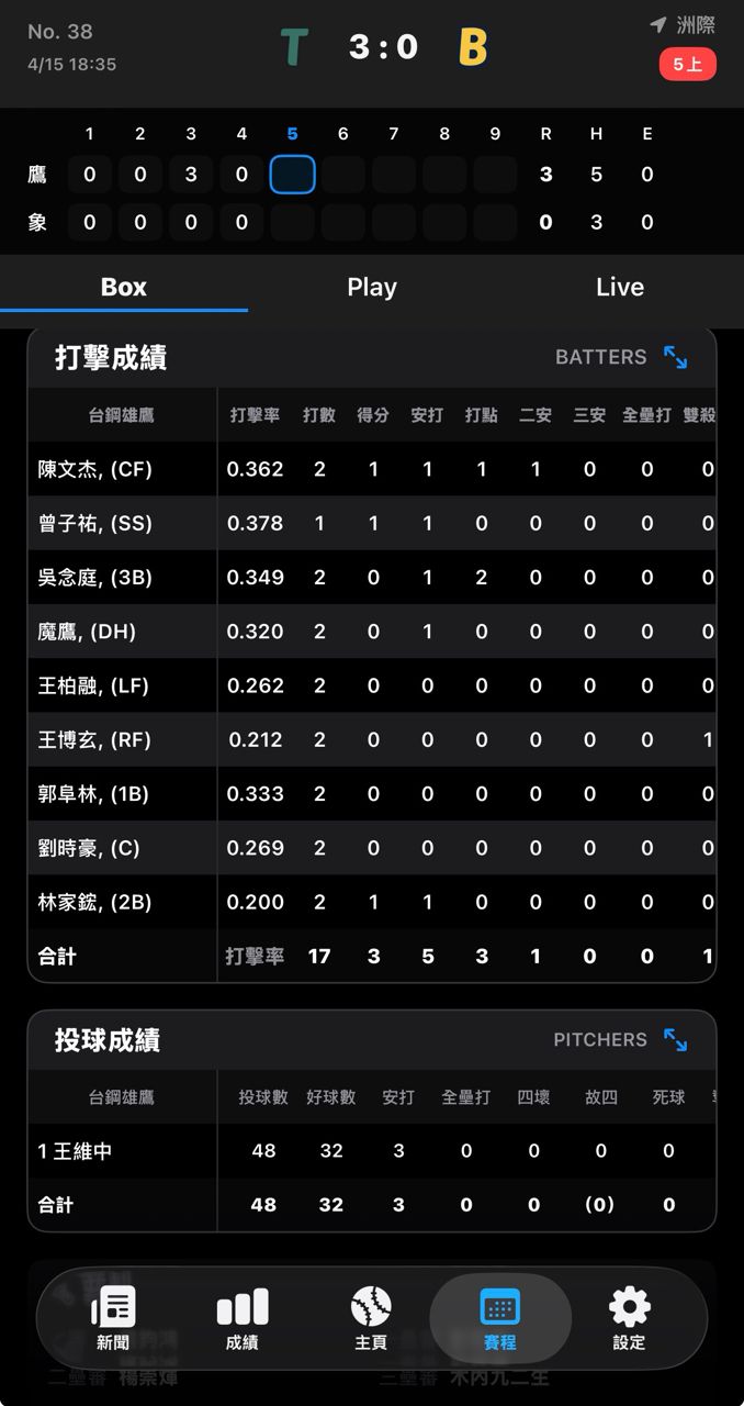 2026-04-15 21:20:00王維中一定MVP吧 先發0分