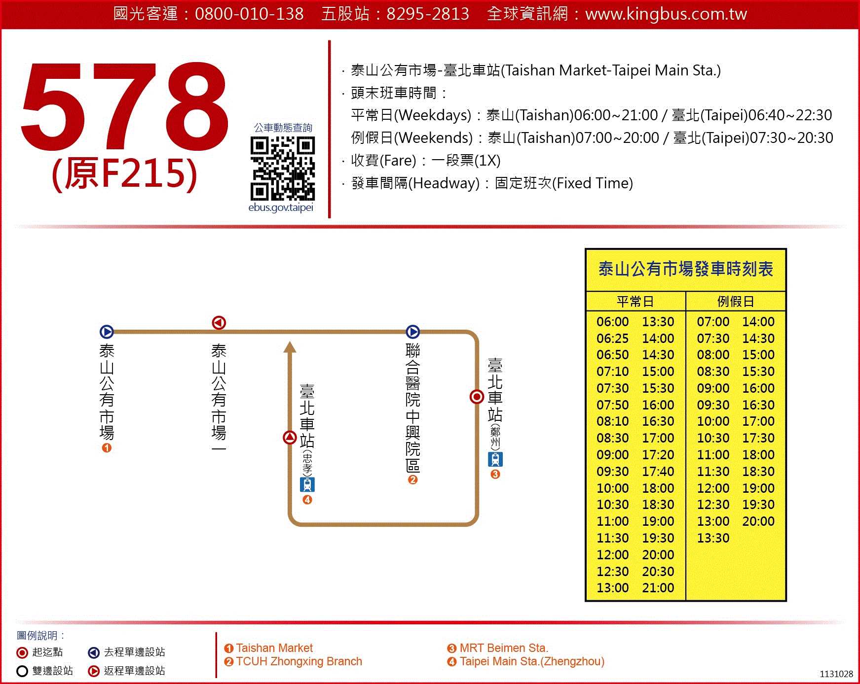 新北市泰山地區往返台北車站的一段票制578與579公車路線,將自3月4日起新增停靠站。