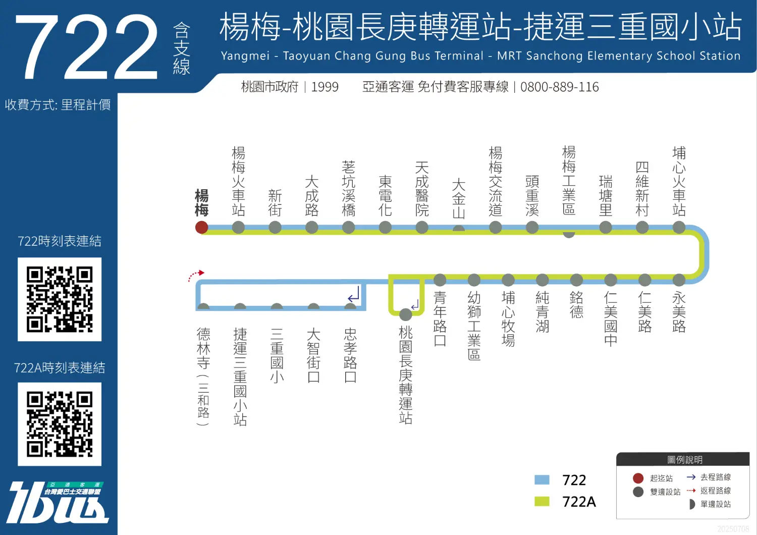 2025-08-24 14:15:29桃園市公車 722 楊梅-捷運三重國小站