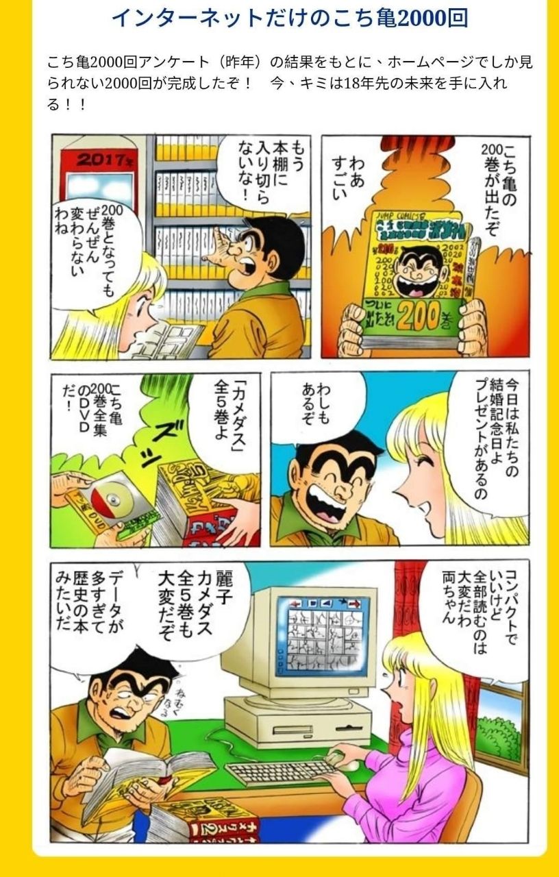 1000集紀念的時候,秋本老師有畫了一張「如果烏龍派出所畫到2000集」會是怎樣,當時就設想2000集的時候兩津和麗子結婚了