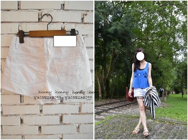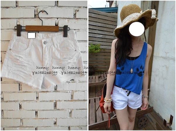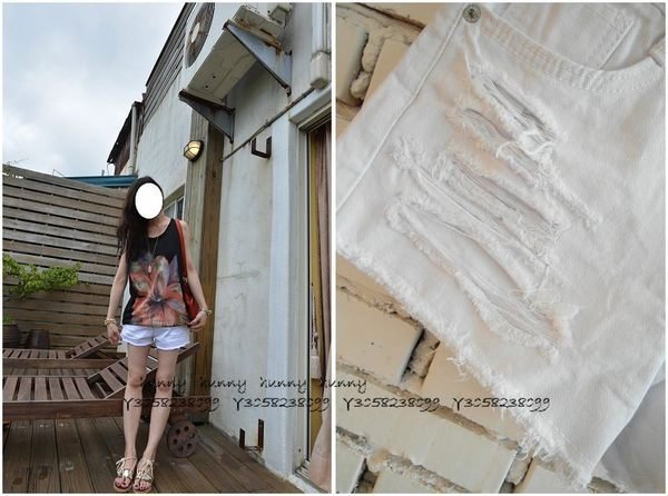 韓妮 韓 假破瘦黑色a字牛仔短褲(白S)