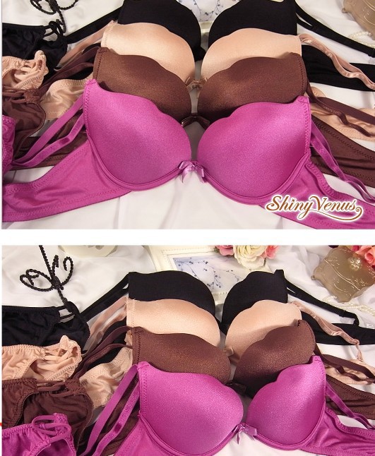 A.玩美維納斯 32B 日系成套內衣加厚胸墊 W鋼圈深V低脊心爆乳內衣胸罩