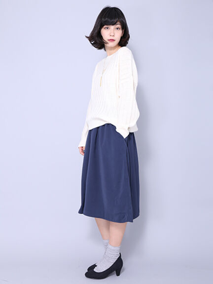 E hyphen 腰圍鬆緊八分寬褲(深藍)