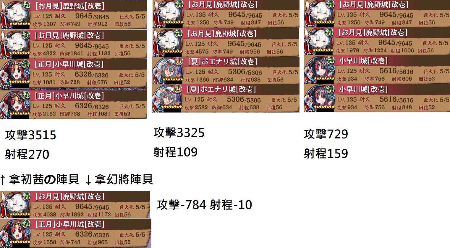 ・一部城娘のバランスを調整