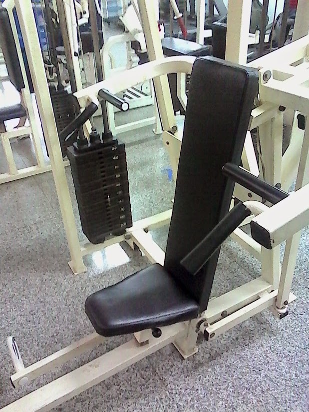 雙手往上推,類似像是舉啞鈴這樣,教練說也是練胸的)、