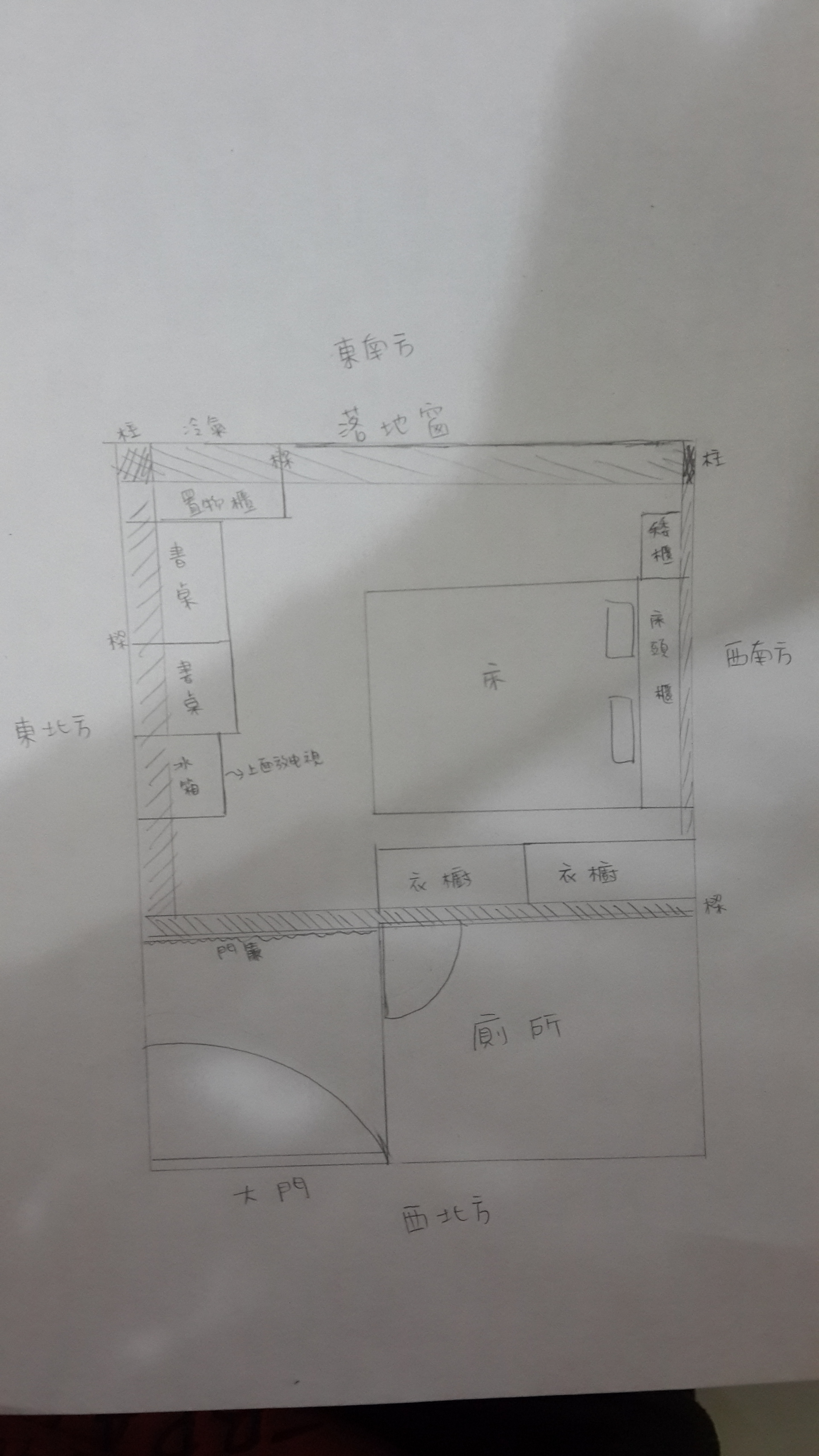 因為剛好是落地窗的出入口+有一點柱子,所以就沒有放櫃子或其它擺設