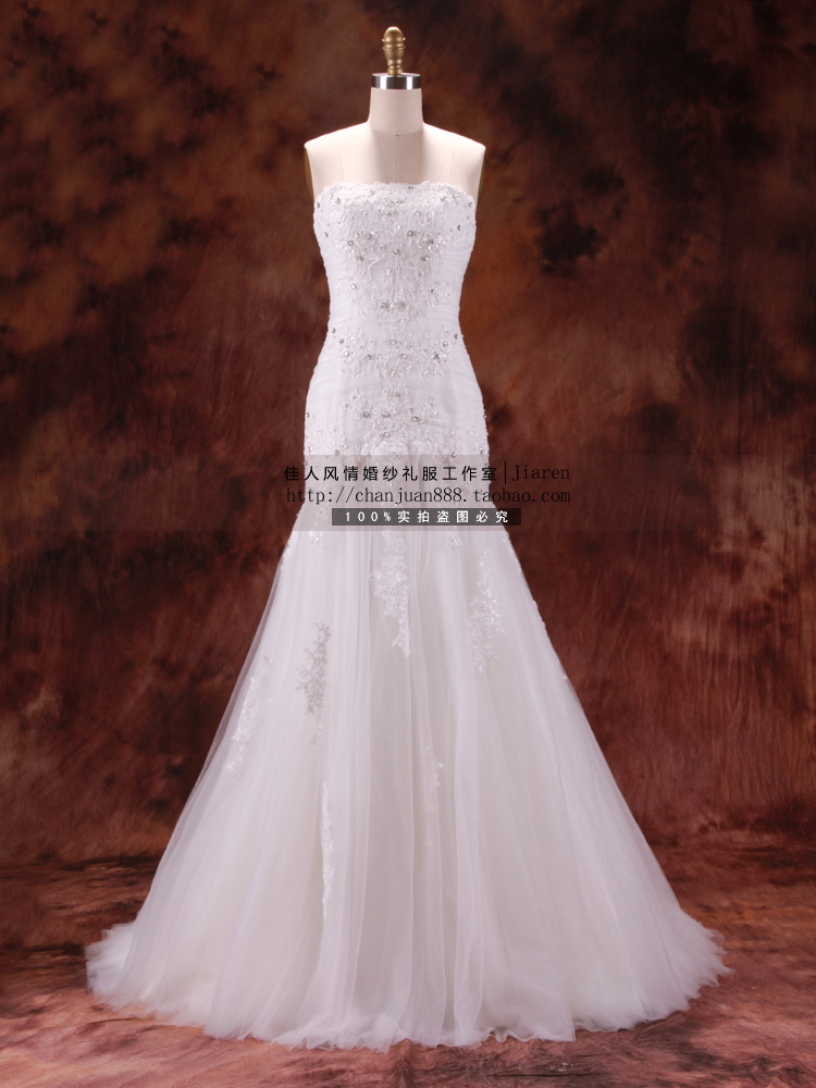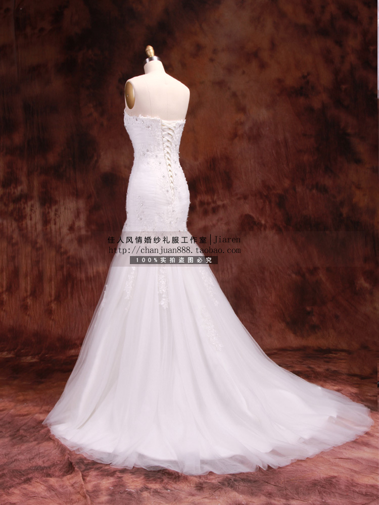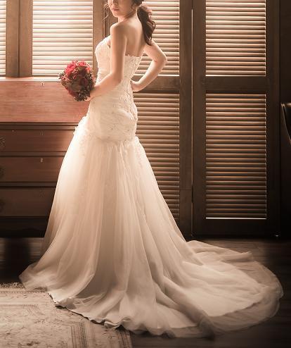 2. 收腰魚尾小拖尾白紗(贈送頭紗、手套、防塵套)~~[已售出]