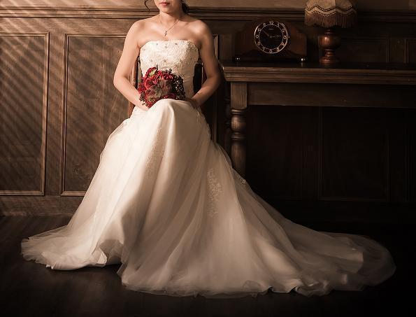1. 羽毛拖尾白紗(贈送頭紗、手套、防塵套)