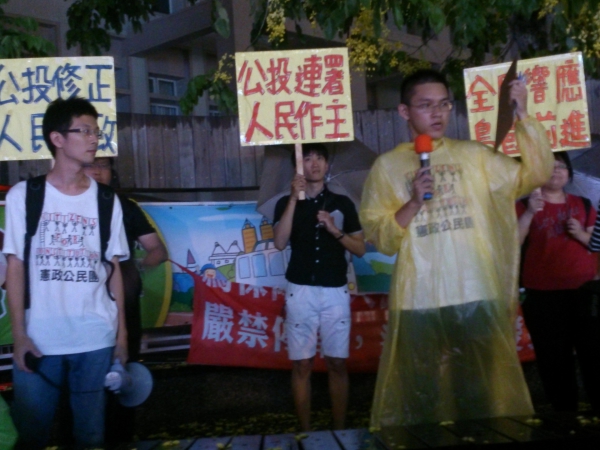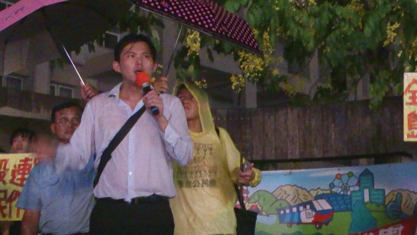 漢神巨蛋黃國昌穿雨衣演講