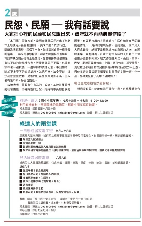 師大三里民自救會的社區發展協會出的社區報