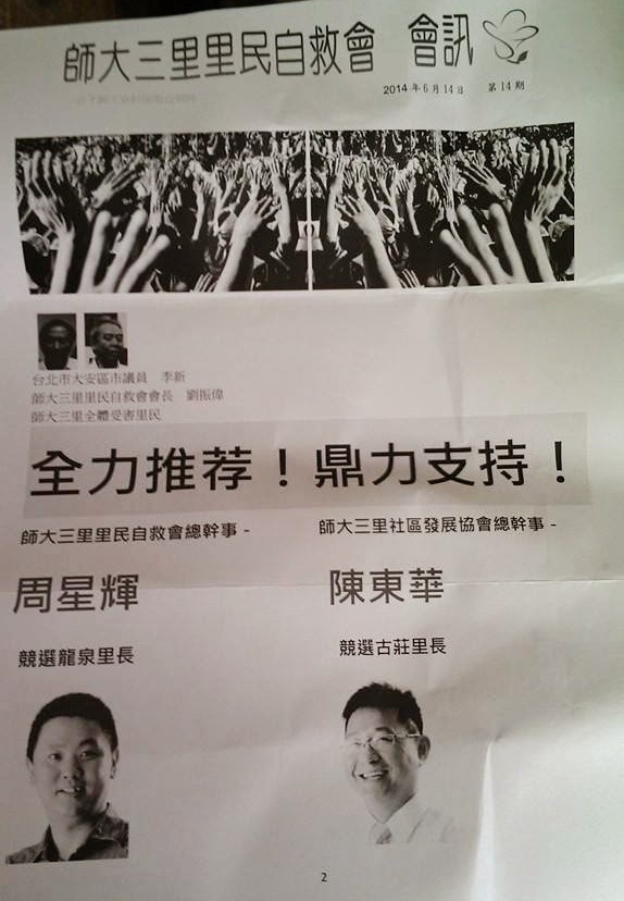 連他們的相關機構師大三里社區發展協會也用自己的「社區報」(其實是輔選宣傳品吧)