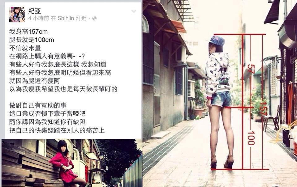 腿長100 從橫膈膜開始算 超好笑 她粉絲團各種神留言XD