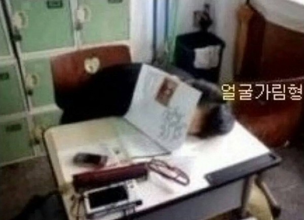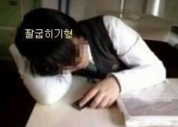 6.「欺騙老師型」(學生愛用姿勢之一,但我想老師應該也都知道我們是在睡覺...哈)