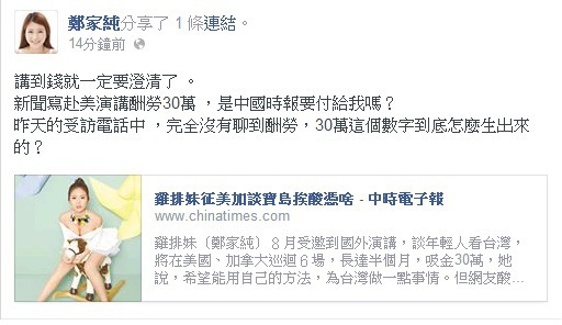 : 新聞寫赴美演講酬勞30萬 ,是中國時報要付給我嗎?