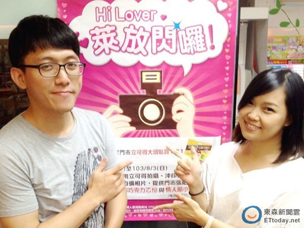 門市舉辦「Hi Lover!萊放閃」,情侶參與活動,並消費立可得商品供門市張貼