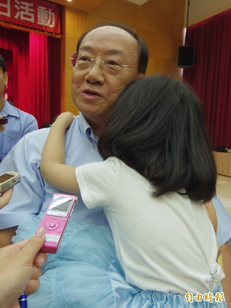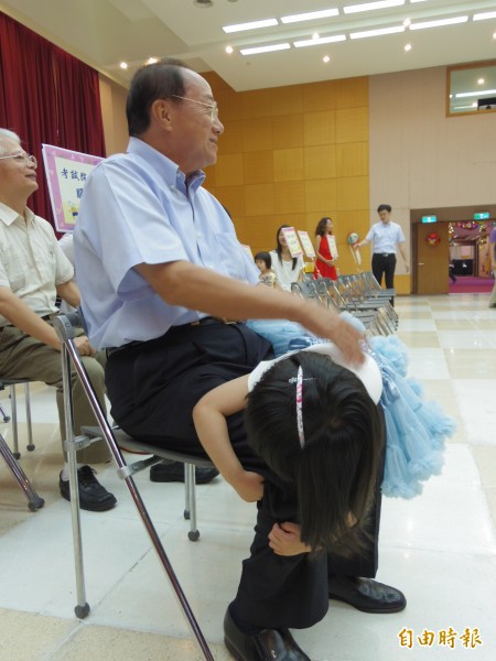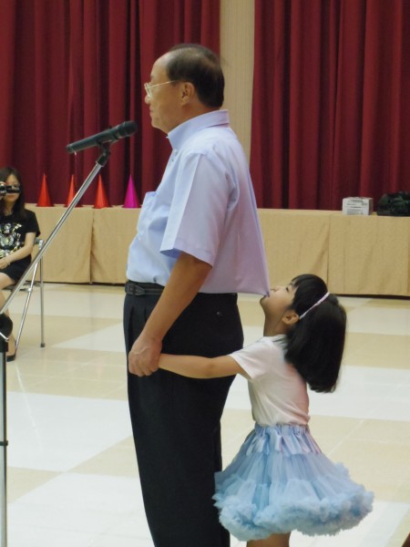 的考試院院長關中今天也再度帶著孫女Amber出席親子日,只見Amber相當黏著爺爺,一回