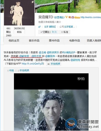 ▲▼吳奇隆藉由淋冰桶挑戰,除了花35秒用冰水灌頂呼籲大家關心罕見疾病患者,也趁此