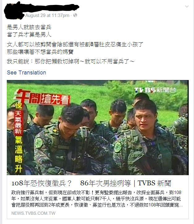 真的痛過生下的小孩 會願意讓他去軍中被玩的媽 很少~~