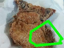 因為找不到生排骨的圖片,所以借用炸好的,反正就是把細骨帶肉切下來當成羊排來煮,像圖中綠色框起來那一塊
