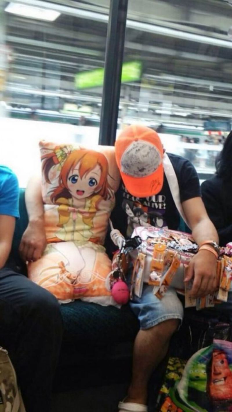 但把他心愛的女性動漫人物抱枕帶上火車,同時,他也發現,這是一個可以在公眾的視野