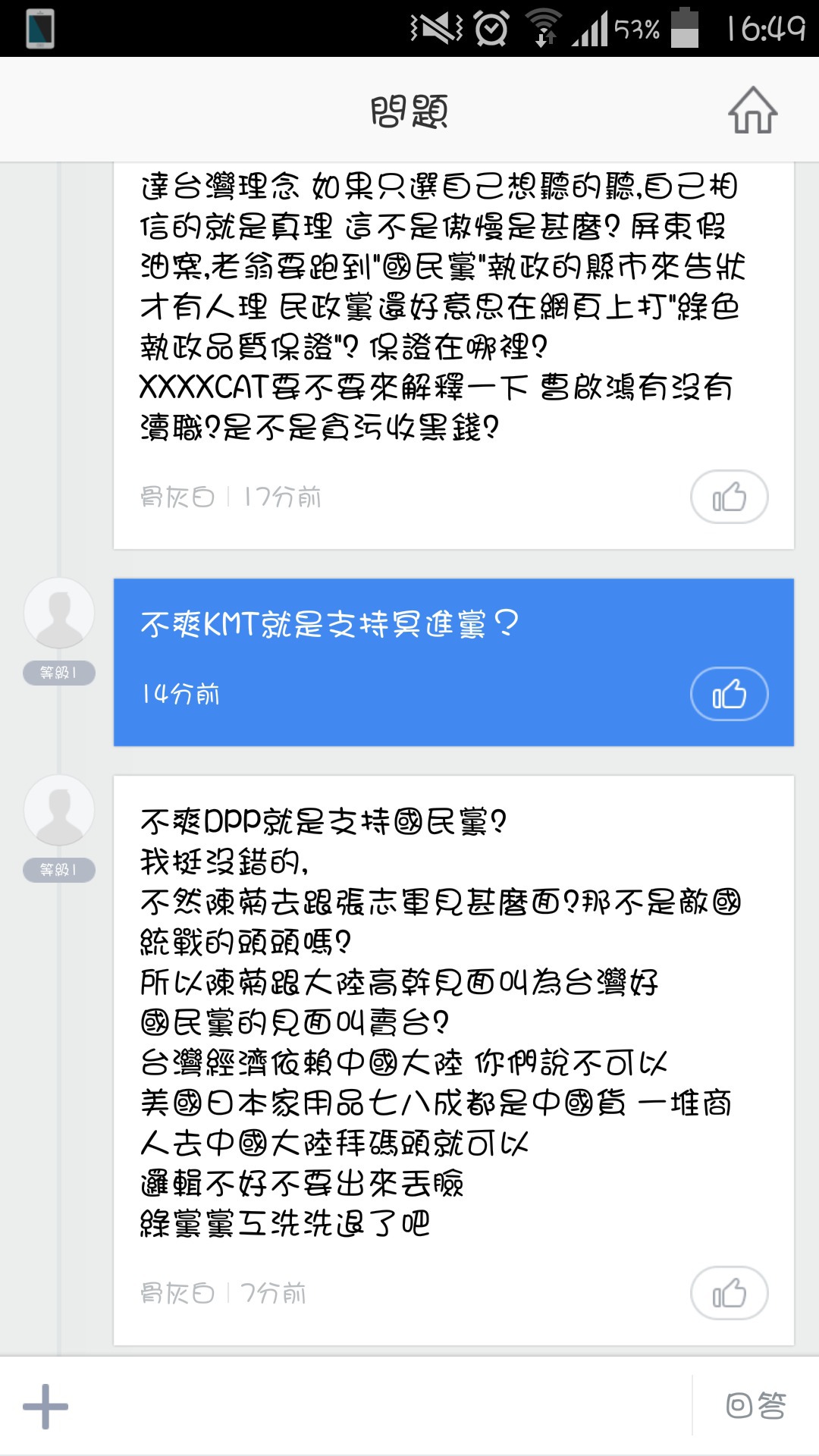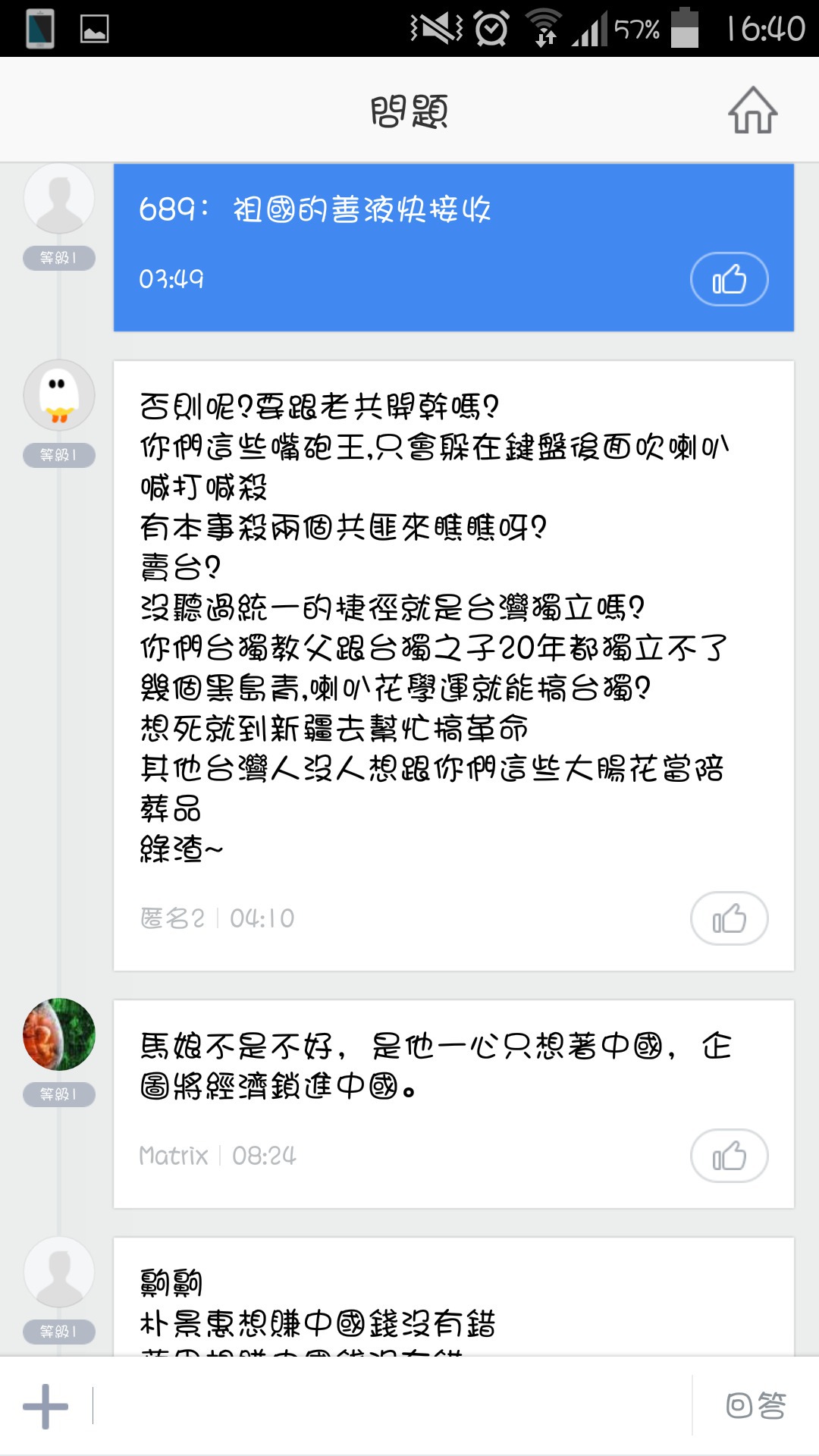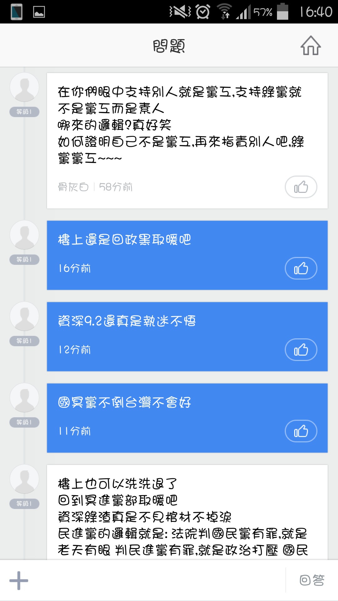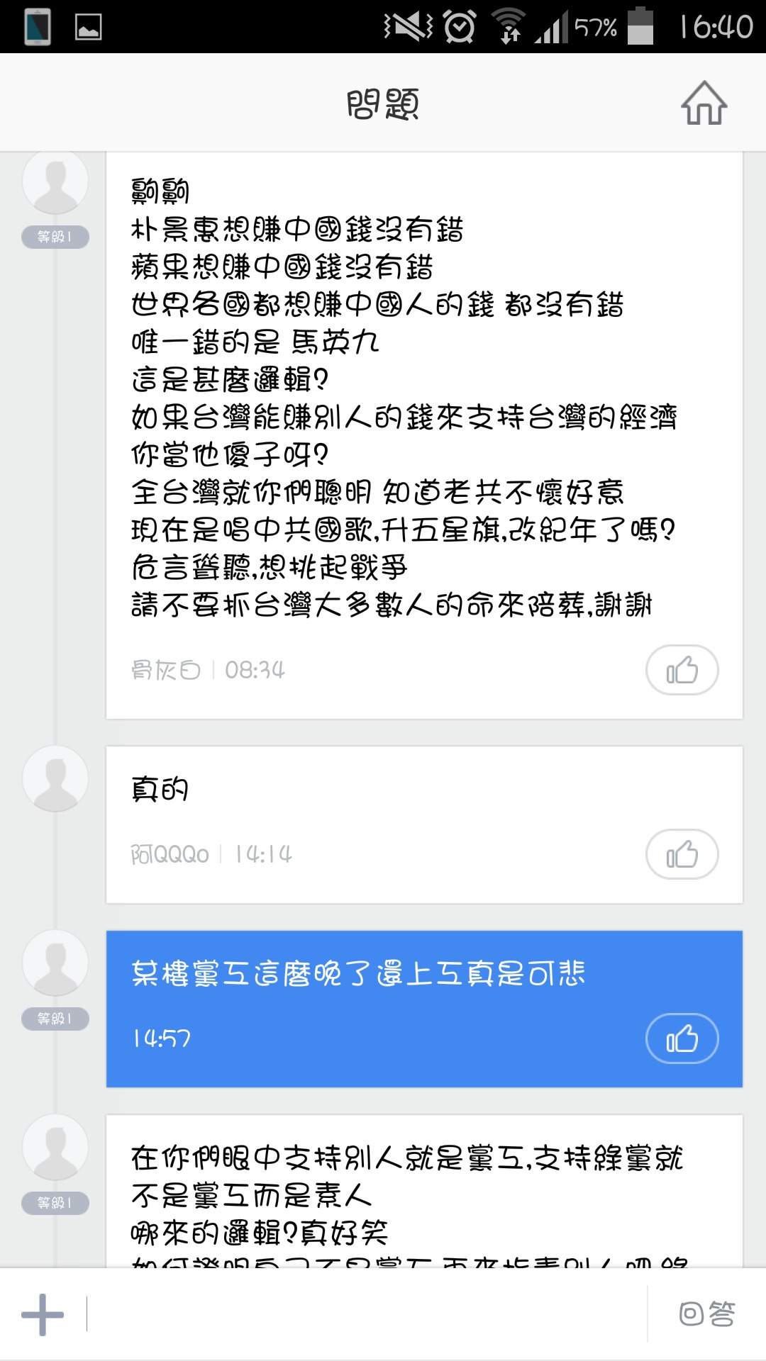 別人再怎麼亂講至少還打出幾行論述 閣下一行嘴砲文連發還自以為是吵架喔?