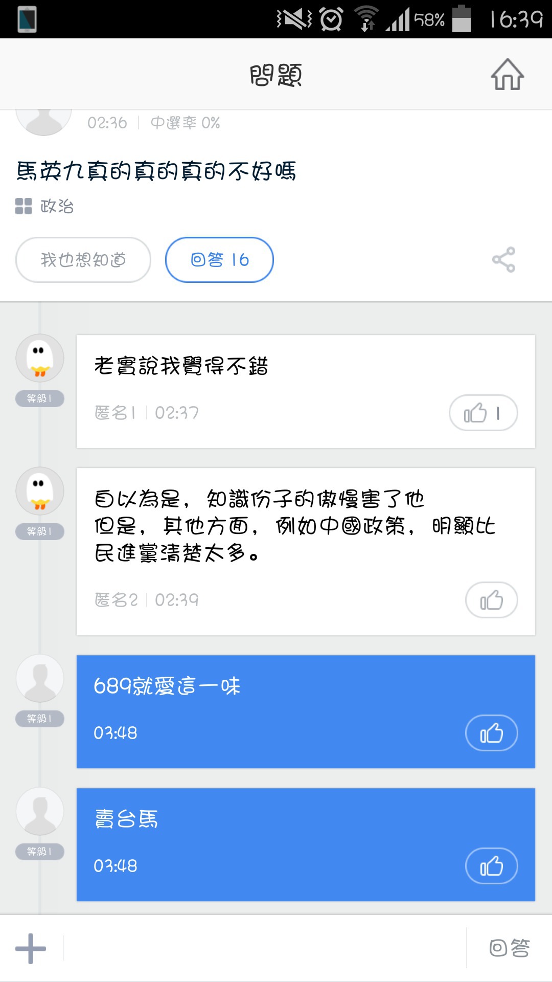 就是這種口號一行吱吱太多 所以我才那麼反吱吱連打個三行以上稍微有前後邏輯的論述都做不到 從頭到尾就口號到底自以為是在吵架zzz被這種一行文連塞的結果 就是不鳥你啊 然後等待下次