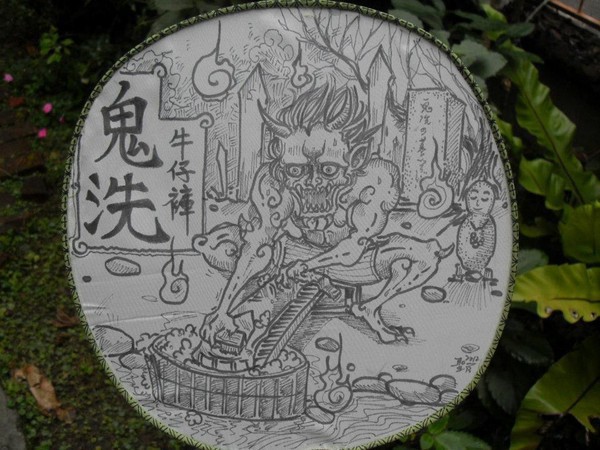 「就是一個...很兇的鬼頭,然後是總之就是鬼洗牛仔褲啦,日本的呀!你知道嗎?」