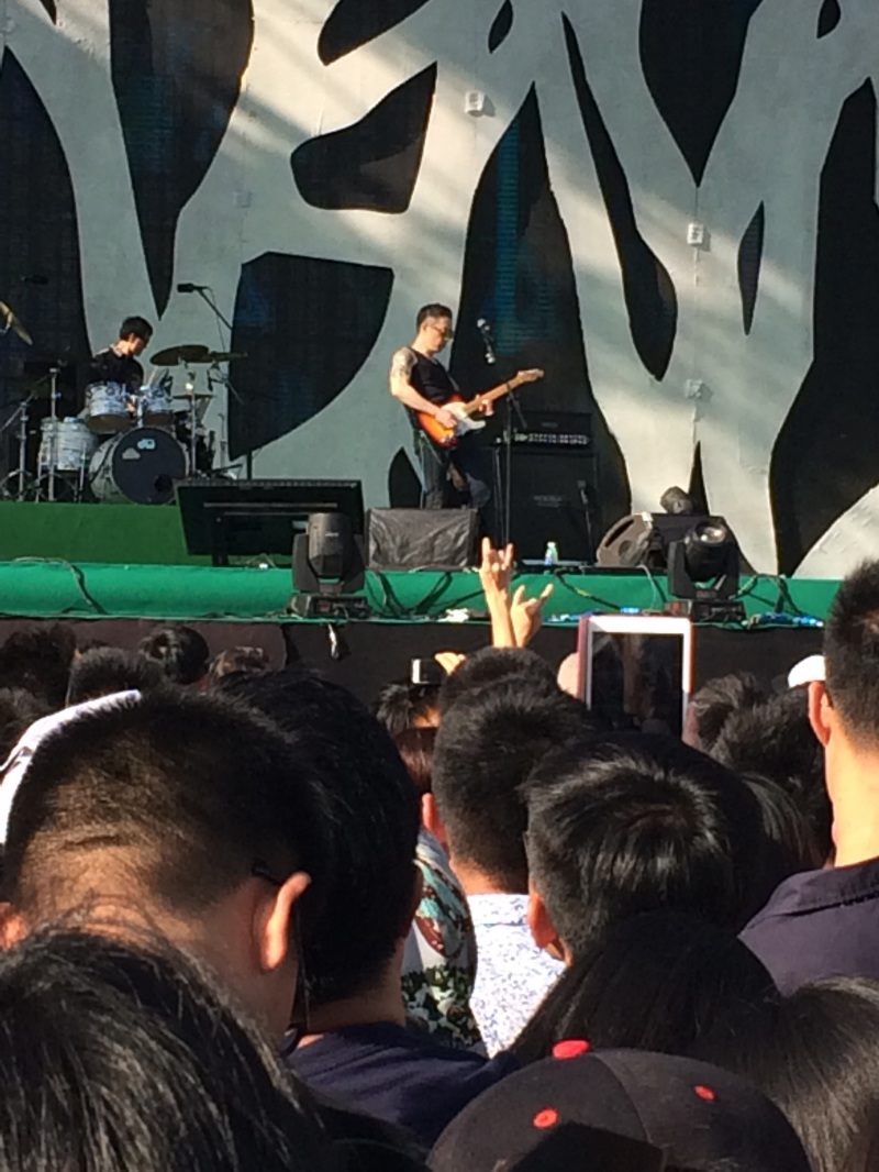 : 他今天下午3點在上海世博公園參加簡單生活音樂節演出,事前在微博說:「想家跔G既