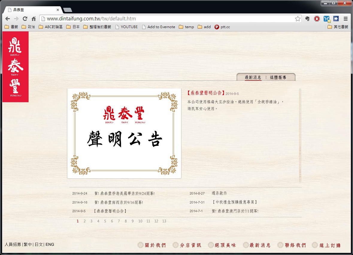9/5 鼎泰豐說使用福壽大豆沙拉油