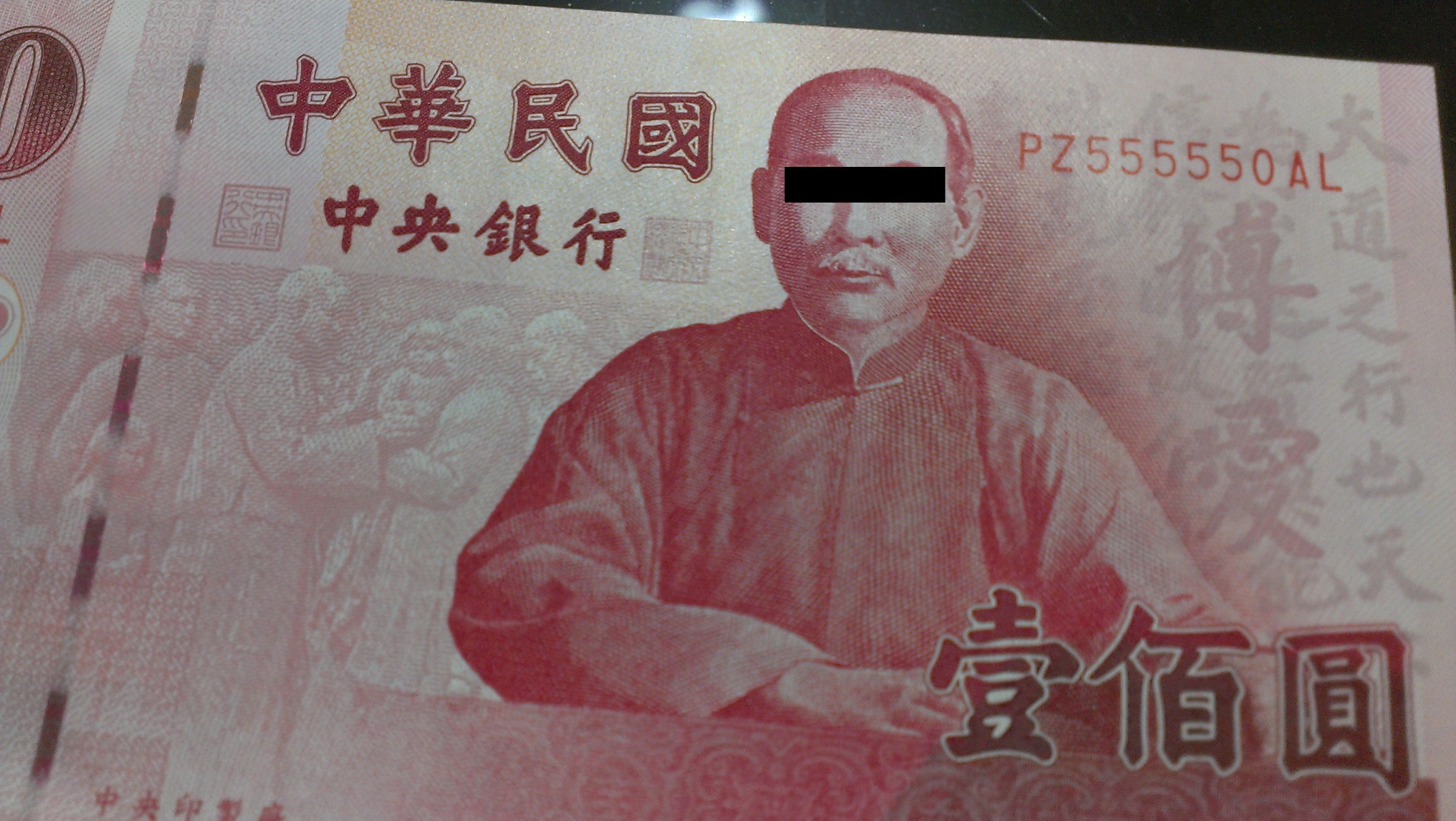 領到一張編號555550的百元鈔