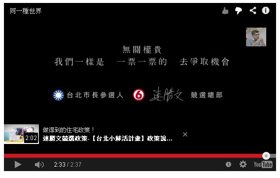 : : 這支競選CF放在Youtube已經5天了,其實以競選廣告來說,
