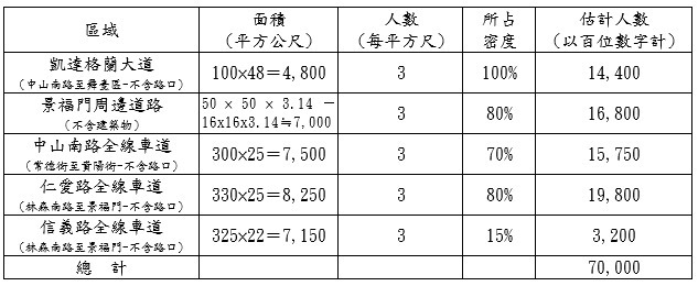 與遊行人數最高時約7萬人。