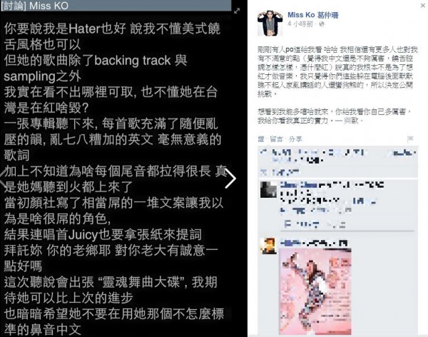〔本報訊〕今(22日)ptt上一名網友在「Hip-hop」板上發文,批饒舌歌手葛仲珊「不知