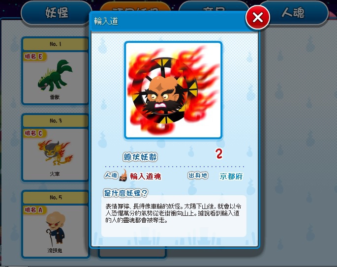 擊敗這些妖怪以後圖鑑就會出現他們的資料,資料裡都有他們的妖怪簡介,順帶蒐集他們