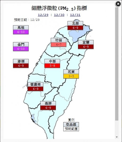地區PM2.5指標仍為中至高等級,會持續到跨年前夕。