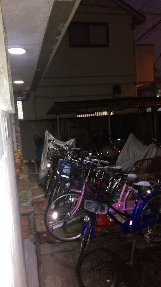 對了!今天大阪下雪,我跑去門外拍照因為太晚,看不到小雪紛飛的樣子,所以拍腳踏