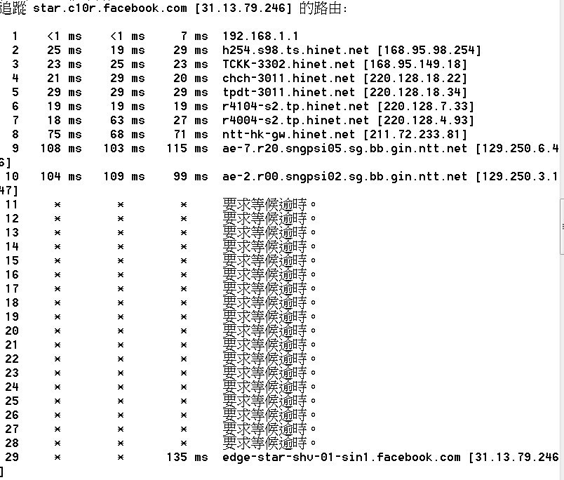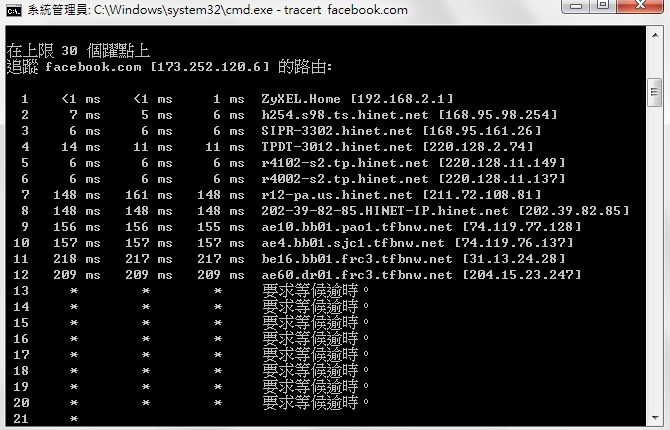 你traceroute根本沒讓他跑到FB就中斷有屁用喔