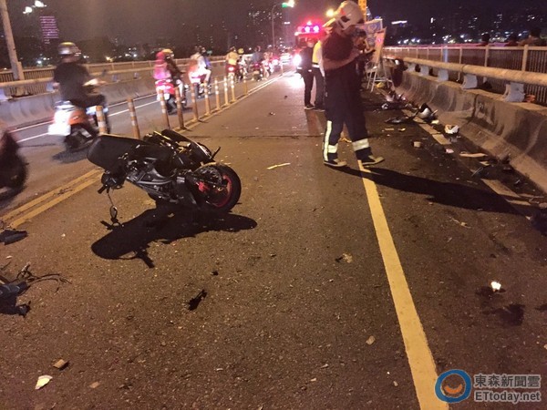 機車,其中2名男子遭撞飛至新海橋旁邊的腳踏車步道,警消到場時已無生命跡象;另有2