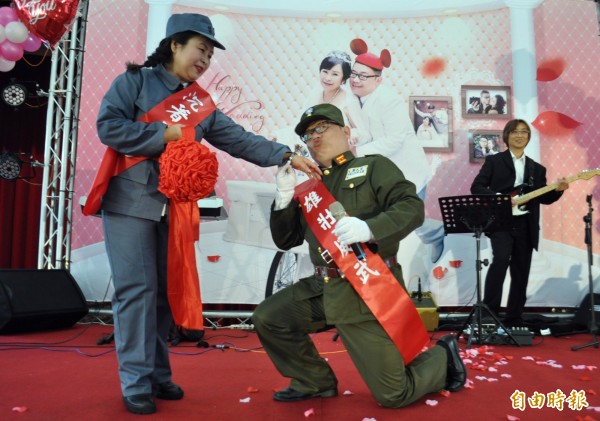 穿著昔日國軍與共軍的軍服,讓賓客眼睛為之一亮。