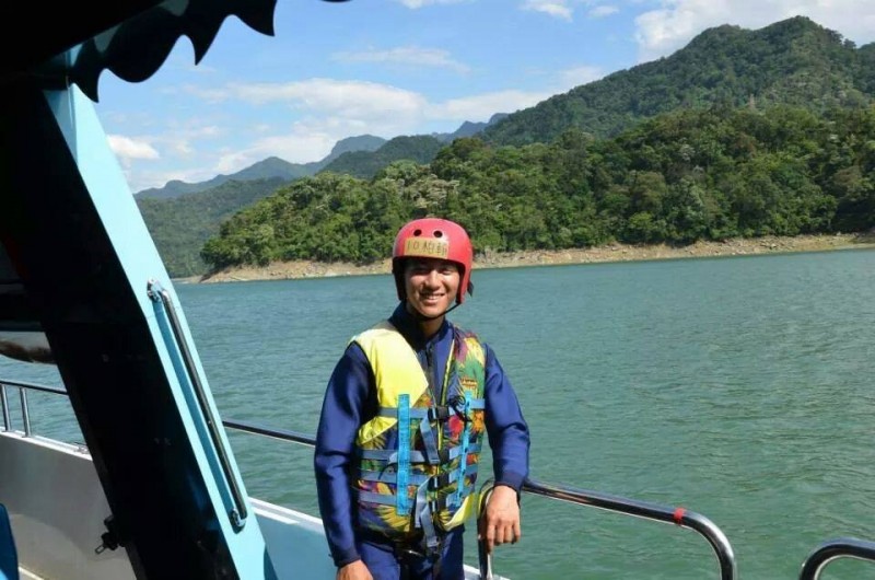 楊柏翰在石門水庫拍照,慶祝水位終於上升。(取自臉書)