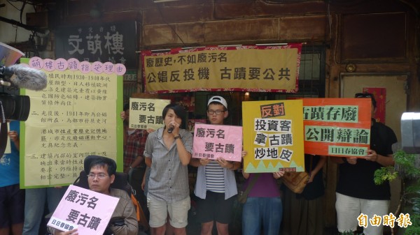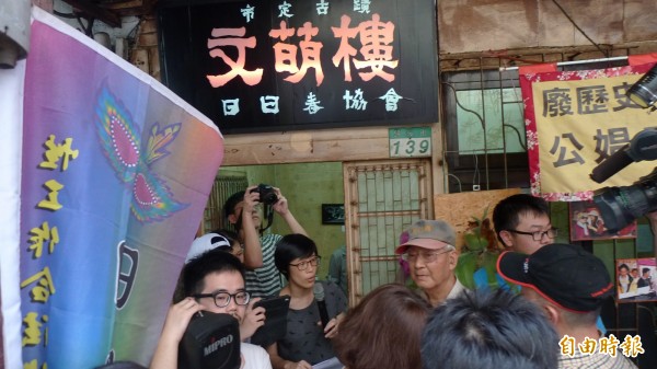 文萌樓的日日春協會表示,今天文化局的會勘,是史無前例的「廢古蹟」會勘。(記者游蓓茹攝)