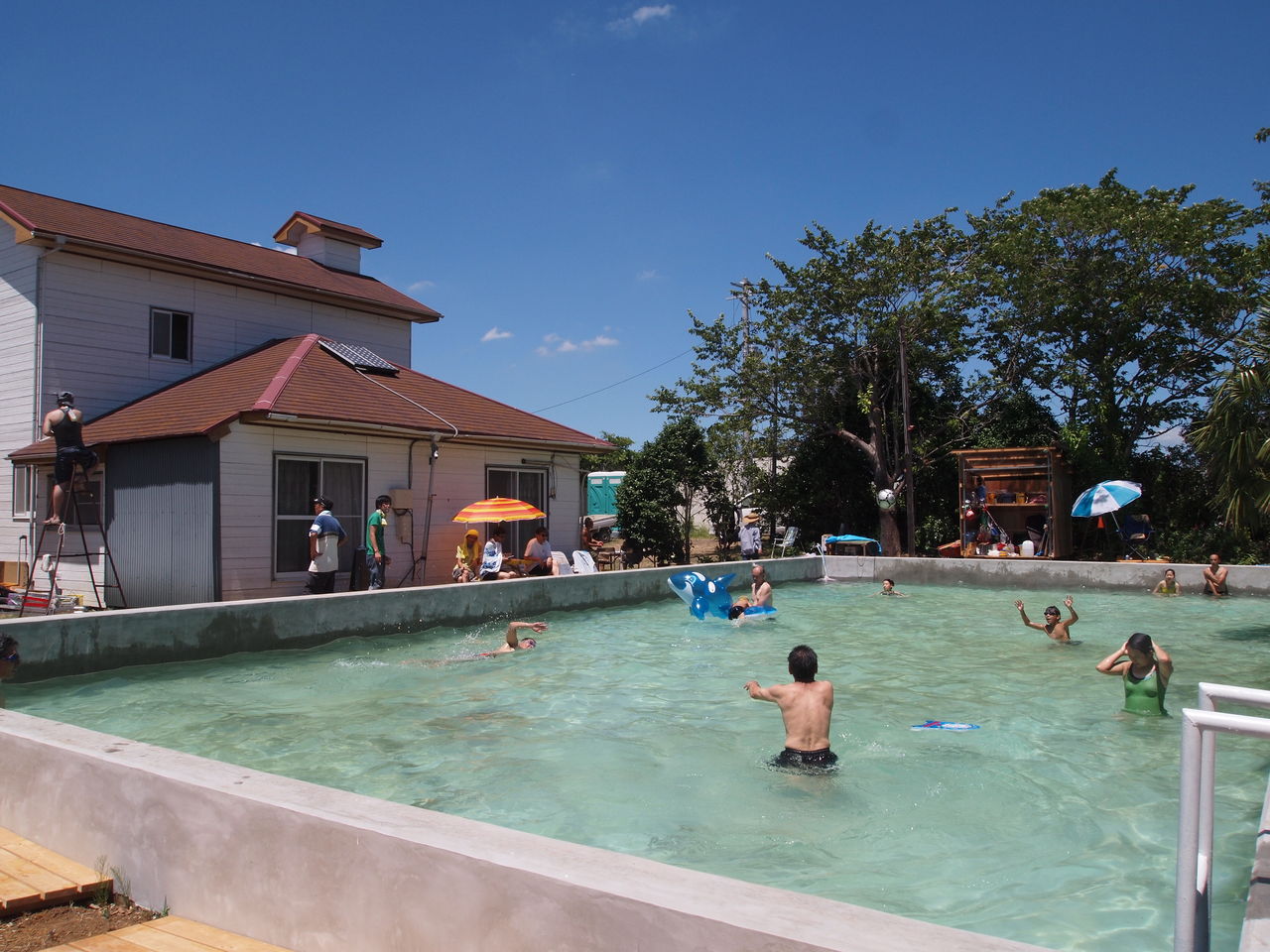 裡頭還有游泳池…,能想像在飛機跑道正中央游泳的感覺嗎??
