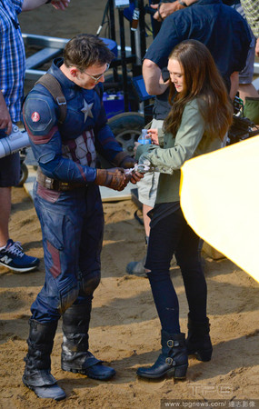 「美國隊長」克里斯伊凡(Chris Evans)在電影《復仇者聯盟2》中,和飾演「緋紅女巫