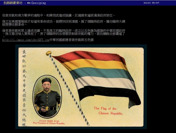 國民黨的青天白日滿地紅旗根本一點鳥關係都沒有。」